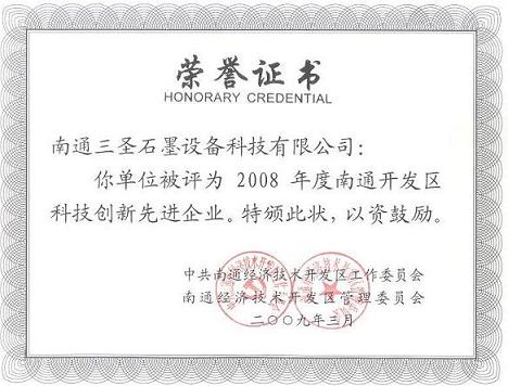 我公司被南通經(jīng)濟技術(shù)開發(fā)區(qū)評為2008年度技術(shù)創(chuàng)新先進單位